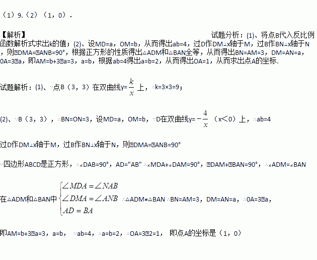 (x<0)上,点A和点C分别在x轴、y轴的正半轴上,且点A、B、C构成的四边形为正方形