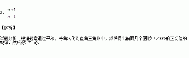 格点图,点A,B,C,D都在格点上,AB,CD交于点P,则tan∠BPD= ,如果是n个边长为1的正方形组成的