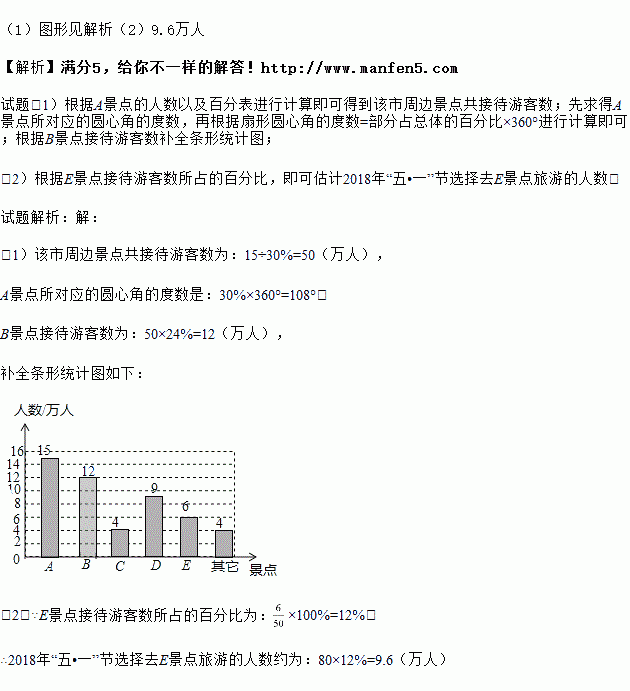 (3)根据近几年到该市旅游人数增长趋势,预计2018年“五一”节将有80万游客选择来该市旅游,请估计有多少万人会选择去D景点旅游?