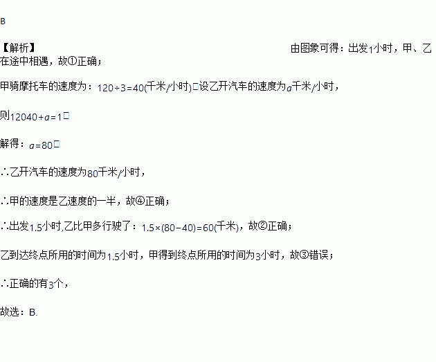 ①出发1小时时,甲、乙在途中相遇;
