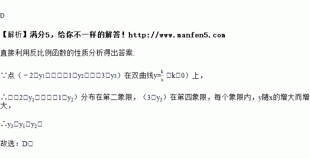 (k<0)上,则y1,y2,y3的大小关系是( )