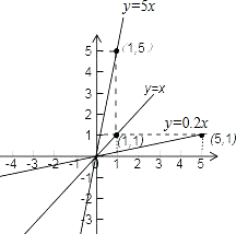 分析:先分别求出函数y=x,y=x,y=5x的图象上除(0,0)以外的点的坐标,画出各函数的图象,再根据函数的图象可直接解答.