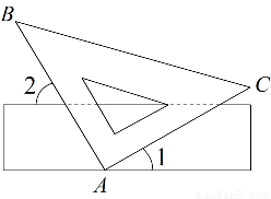 如图,把三角板的直角顶点放在直尺的一边上,若∠1=30°,则∠2的度数为( )