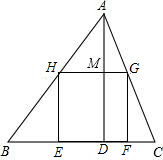 分析 HG交AD于M,如图,设正方形EFGH的边长为x,由正方形的性质得GH∥EF,GH=HE=x,再利用HG∥BC可判断△AHG∽△ABC,根据相似三角形的性质得$\frac{x}{12}$=$\frac{6-x}{x}$,然后根据比例性质求出x即可.