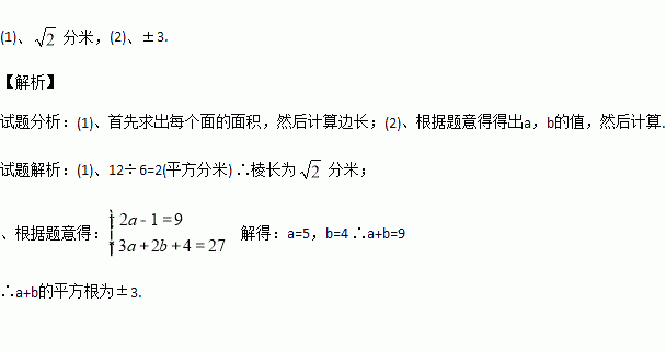 (2)如果2a-1的平方根是±3,3a+2b+4的立方根是3,求a+b的平方根.