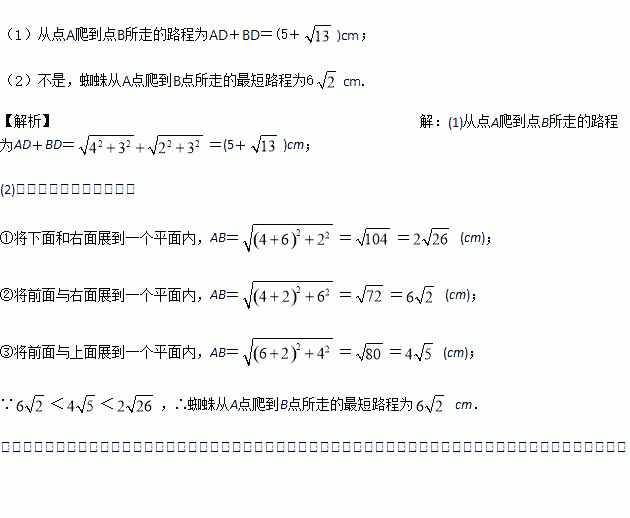 一块长方体木块的各棱长如图所示,一只蜘蛛在木块的一个顶点A处,一只苍蝇在这个长方体上和蜘蛛相对的顶点B处,蜘蛛急于捉住苍蝇,沿着长方体的表面向上爬.