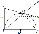 分析 (1)先证明AC、BF是半圆O的切线,AC∥BF,得出∠F=∠CAD,再由切线长定理得出CA=CD,BE=DE,求出∠CAD=∠CDA,即可求出∠F;
