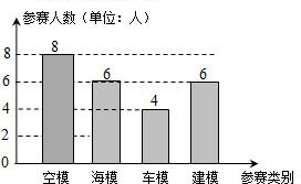 解:(1)由条形统计图可得:该校参加车模、建模比赛的人数分别是4人,6人;(每空,共2分)
