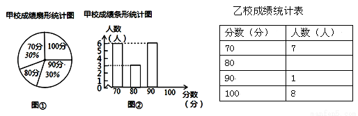 某市团委举办“我的中国梦”为主题的知识竞赛,甲、乙两所学校参赛人数相等,比赛结束后,发现学生成绩分别为70分,80分,90分,100分,并根据统计数据绘制了如下不完整的统计图表: