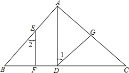 如图,在△ABC中,AD⊥BC于点D,EF⊥BC于点F,∠B=∠GDC,试说明∠1=∠2的理由.