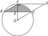 (2)OA与BC相交于E,如图,由平行四边形的性质得AD∥BC,AD=BC=6$\sqrt{3}$,则OA⊥BC,∠OCE=∠D=30°,再根据含30度的直角三角形三边的关系计算出BE=CE=3$\sqrt{3}$,OE=$\frac{\sqrt{3}}{3}$CE=3,OC=2OE=6,所以AE=OE=3,于是可判断S△ABE=S△OCE,所以S阴影部分=S扇形AOC,然后根据扇形面积公式计算.