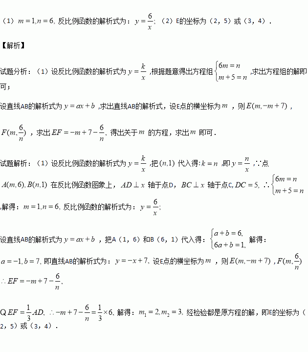 如图,点A(m,6),B(n,1)在反比例函数图象上,AD⊥x轴于点D,BC⊥x轴于点C,DC=5.