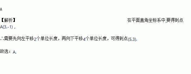 在平面直角坐标系中,点A ( 5, 3 ) 的坐标变为 ( 3 , -1),则点A经历了怎样的图形变化 ( )