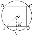分析 画出平面图,连接OA,作OM⊥AB,垂足为N,交⊙O于M,由正方形的性质得出MN=x,ON=AN=$\frac{\sqrt{2}}{2}$OA=$\sqrt{2}$,得出x=OM-ON,即可得出结果.