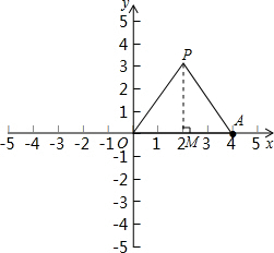 分析:(1)根据点A的坐标是(4,0),且AP=OP=4,得出△OPA是等边三角形,求出∠POA的正弦值,利用当点P在第一象限时,