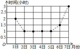 如图是小芹6月1日﹣7日每天的自主学习时间统计图,则小芹这七天平均每天的自主学习时间是( )