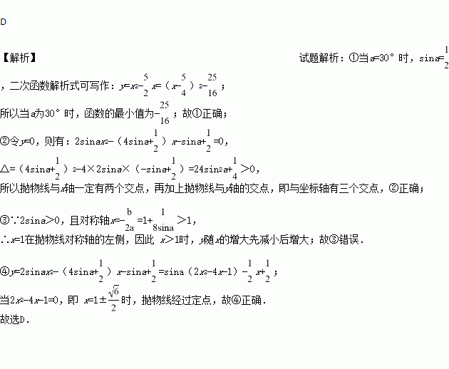 <60°时,函数在x >1时,y随 x的增大而增大;④ 无论锐角