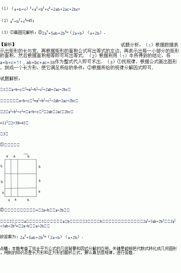 ②再利用另一种计算面积的方法,可将多项式2a2+5ab+2b2分解因式.即2a2+5ab+2b2=______.