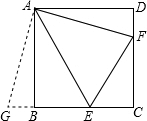 分析:把△ADF绕点A顺时针旋转90°得到△ABG,根据旋转的性质可得AG=AF,GB=DF,∠BAG=∠DAF,再求出∠EAG=45°,从而得到∠EAG=∠EAF,再利用“边角边”证明△AEG和△AEF全等,根据全等三角形对应边相等可得EG=EF,再根据BE+GB=EG代换即可.