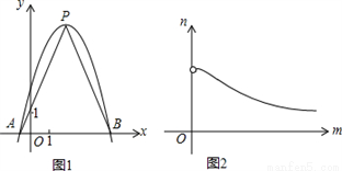 如图1,抛物线y=-x2+bx+c的顶点为P,与x轴交于A,B两点.若A,B两点间的距离为m,n是m的函数,且表示n与m的函数关系的图象大致如图2所示,则n可能为( )