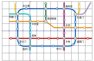 如图,将北京市地铁部分线路图置于正方形网格中,若设定崇文门站的坐标为(0,-1),雍和宫站的坐标为(0,4),则西单站的坐标为( )