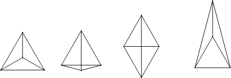 23、平面上取四点,使这四个点两两之间的距离只有两个不同的数值,如图PA=PB=PC,AB=BC=AC,则这四点的取法可有多少种,至少再画出三种图形?