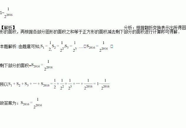 将边长为1的正方形纸片按图1所示方法进行对折,记第1次对折后得到的图形面积为S1,第2次对折后得到的图形面积为S2,…,第n次对折后得到的图形面积为Sn,请根据图2化简,S1+S2+S3+…+S2016=_____.