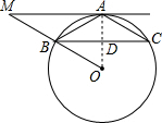 分析 (1)连结OA,如图,根据切线的性质得OA⊥AM,而MA∥BC,则OA⊥BC,再根据垂径定理得到$\widehat{AB}$=$\widehat{BC}$,然后根据圆心角、弧、弦的关系可得AB=AC;