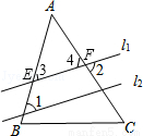 如图,直线l1∥l2,且分别与△ABC的两边AB、AC相交,若∠A=50°,∠1=35°,则∠2的度数为( )