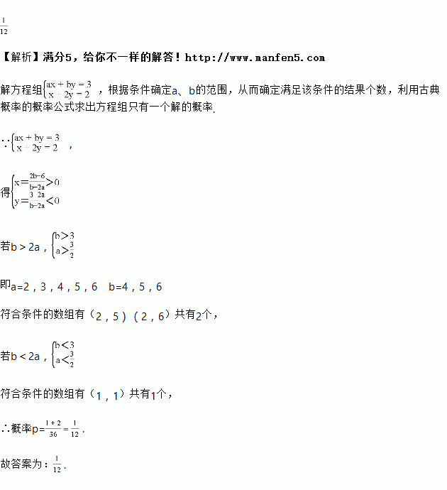 抛一枚质地均匀六面分别刻有1、2、3、4、5、6点的正方体骰子两次,若记第一次出现的点数为a,第二次出现的点数为b,则以方程组