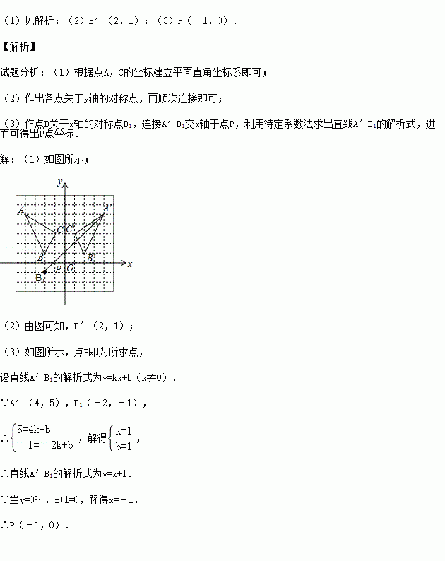 (3)P是x轴上的动点,在图中找出使△A′BP周长最短时的点P,直接写出点P的坐标.