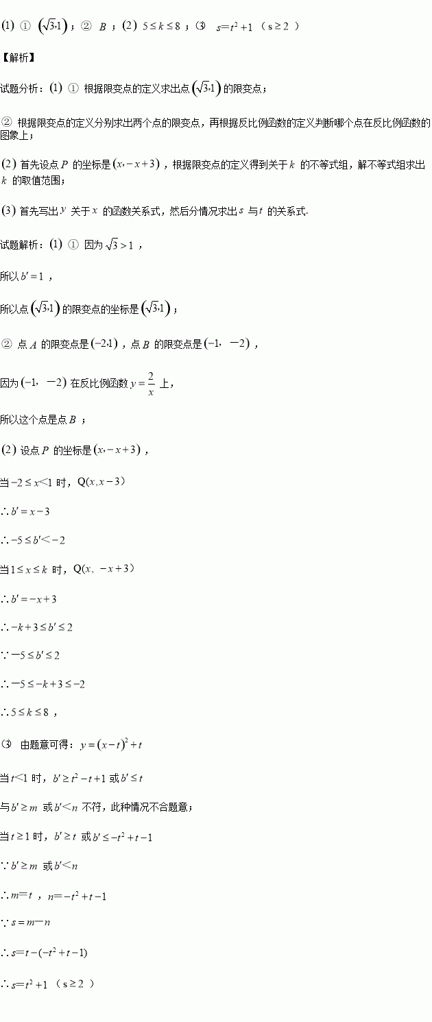 (3)若点P在关于x的二次函数y= x2-2tx+t2+t的图象上,其限变点Q的纵坐标b′的取值范围是b′≥m或b′<n,其中m>n.令s=m-n,求s关于t的函数解析式并直接写出s的取值范围.