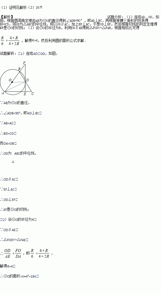 (2)若AE=6,FB=4,求⊙O的面积.