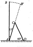 每年的6至8月份是台风多发季节,某次台风来袭时,一棵大树树干AB(假定树干AB垂直于地面)被刮倾斜15°后折断倒在地上,树的项部恰好接触到地面D(如图所示),量得树干的倾斜角为∠BAC=15°,大树被折断部分和地面所成的角∠ADC=60°,