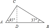 在Rt△BCD中,tanB=tan37°=$\frac{CD}{BD}$≈0.75,BD=$\frac{CD}{0.75}$;
