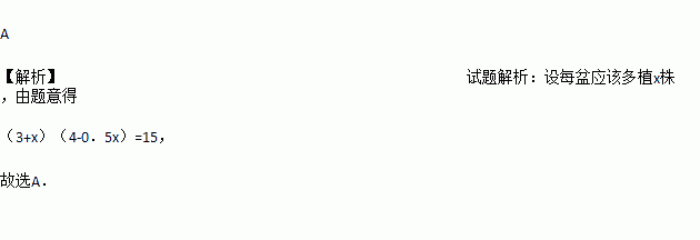 某种花卉每盆的盈利与每盆的株数有一定的关系,每盆植3株时,平均每株盈利4元;若每盆增加1株,平均每株盈利减少0.5元,要使每盆的盈利达到15元,每盆应多植多少株?设每盆多植x株,则可以列出的方程是 ( )