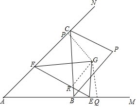 解:(1)过G作GP⊥AN于P,GQ⊥AM于Q,PR⊥EF于R,
