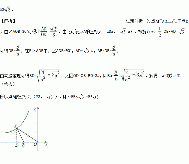 .如图6,在平面直角坐标系中,点A在第二象限内,点B在x轴上,∠AOB=30°,AB=BO,反比例函数y=