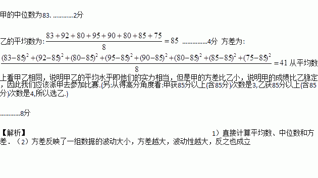 (1)ÇëÄãÔÚ±íÖÐÌîÉϼס¢ÒÒÁ½ÃûѧÉúÕâ8´Î²âÊԳɼ¨µÄƽ¾ùÊý¡¢ÖÐλÊýºÍ·½²î¡££¨ÆäÖÐÆ½¾ùÊýºÍ·½²îµÄ¼ÆËãÒªÓйý³Ì£©.