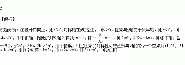 如图是二次函数y=ax2+bx+c图象的一部分,其对称轴为x=-1,且过点(-3,0).下列说法:①abc<0;②2a-b=0;③4a+2b+c<0;④3a+c=0;则其中说法正确的是( ).