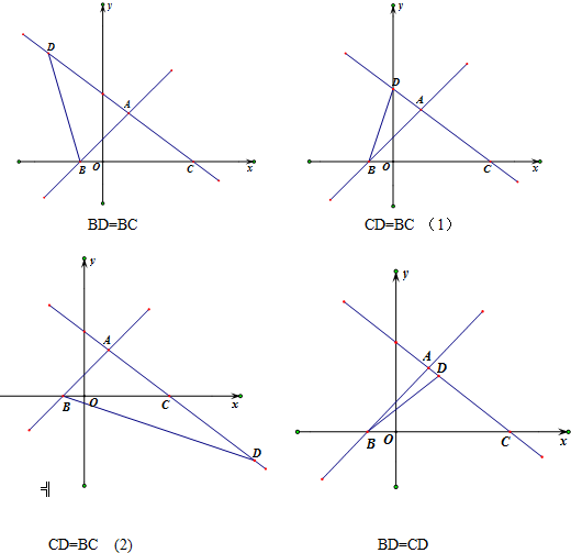 (3)分类讨论:当DB=DC,则求得D点的横坐标,然后代入y=-$\frac{3}{4}$x+3可确定D点的纵坐标;当BC=BD=5,设D点坐标为(x、y),然后利用勾股定理建立等量关系求解.