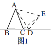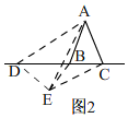 当点D在射线BC的反向延长线上时,如图2,![]()