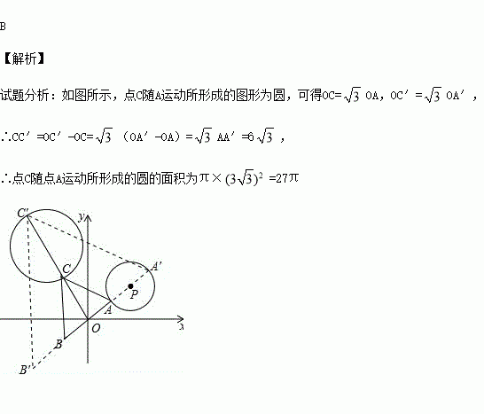 如图,⊙P在第一象限,半径为3.动点A沿着⊙P运动一周,在点A运动的同时,作点A关于原点O的对称点B,再以AB为边作等边三角形△ABC,点C在第二象限,点C 随点A运动所形成的图形的面积为 ---------------------( )