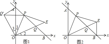 ·ÖÎö £¨1£©½«¡÷OQBÈÆµãOÄæÊ±ÕëÐýת90¡ãµÃµ½¡÷OQ¡äA£¬Èçͼ1Ëùʾ£¬Á¬½ÓPQ¡ä£¬¸ù¾ÝÖ±ÏßAB½âÎöʽµÃµ½Èý½ÇÐÎAOBΪµÈÑüÖ±½ÇÈý½ÇÐΣ¬È·¶¨³öÈý½ÇÐÎAPQ¡äΪֱ½ÇÈý½ÇÐΣ¬ÀûÓù´¹É¶¨ÀíÁгö¹ØÏµÊ½£¬ÀûÓÃSASµÃµ½Èý½ÇÐÎOPQ¡äÓëÈý½ÇÐÎOPQÈ«µÈ£¬ÀûÓÃÈ«µÈÈý½ÇÐζÔÓ¦±ßÏàµÈµÃµ½PQ¡ä=PQ£¬µÈÁ¿´ú»»¼´¿ÉµÃÖ¤£»