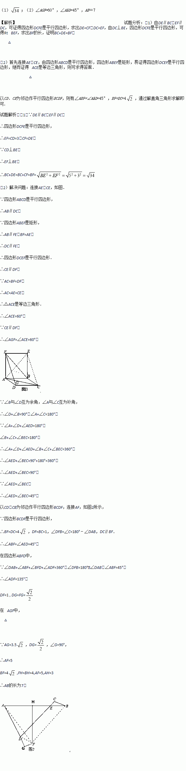 如图3,已知?ABCD和矩形ABEF,AC与DF交于点G,AC=BF=DF,求∠AGF的度数.
