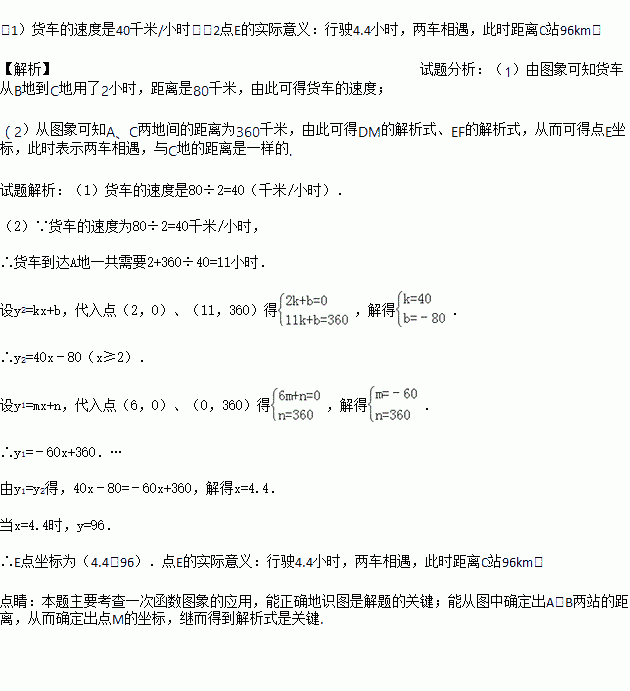 如图1所示,在A,B两地之间有汽车站C,客车由A地驶往C站,货车由B地驶往A地.两车同时出发,匀速行驶.图2是客车、货车离C站的路程y1,y2(千米)与行驶时间x(小时)之间的函数图象.