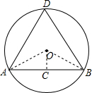 解:(1)作OC⊥AB于C,则AC=BC=$\frac{1}{2}$AB=$\sqrt{3}$,