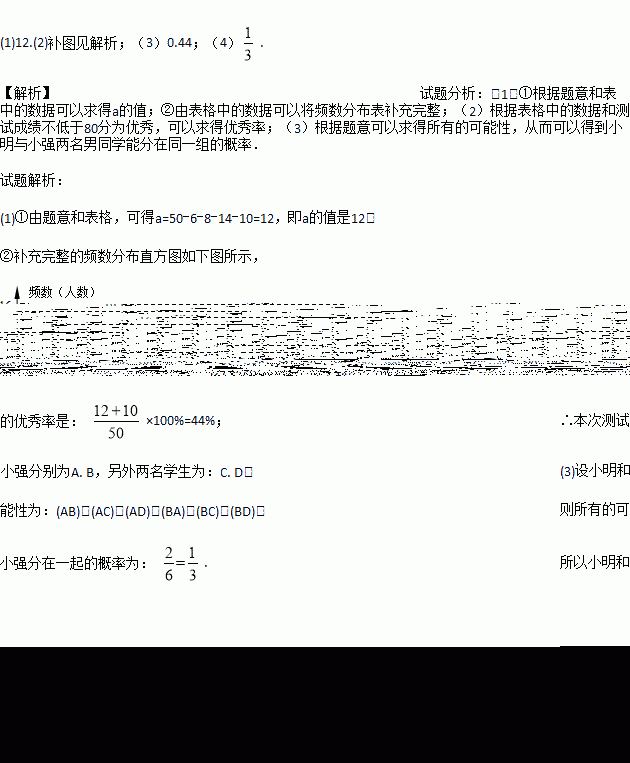 (1)①表中a的值为 ; ②频数分布直方图补充完整;