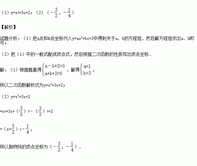 (1)求抛物线y=ax2+bx+2(a≠0)的函数表达式;