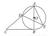 为☉O外一点,过C作☉O的切线,切点为B,连接AC交☉O于D,∠C=38°.点E在AB右侧的半圆周上运动(不与A,B重合),则∠AED的大小是( )